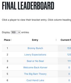 We take over from there. Your pool standings and all other reports are updated in near real-time as games conclude.